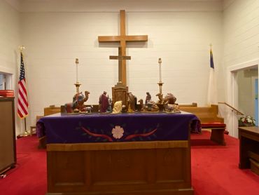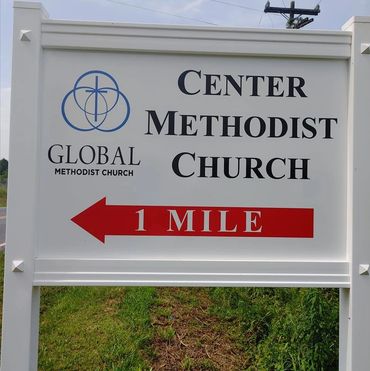 The Methodist Church sign (picture to the left) was found during some "house cleaning". It is believed that the sign was made some time prior to 1963, when in use, it was placed on Switchboard Road, and was the original directional sign for the church.